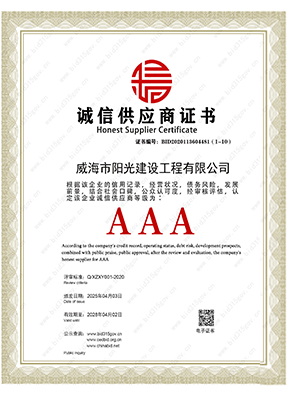 | 公司名称 | 威海市阳光建设工程有限公司 | ||